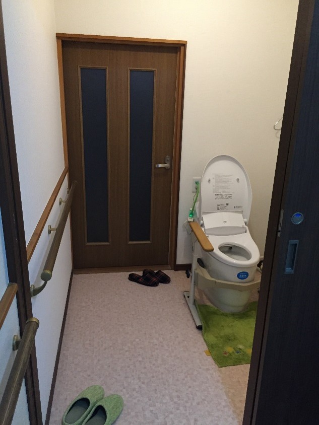 トイレはドアをとっぱらい広々とし介助しやすく改装しました。